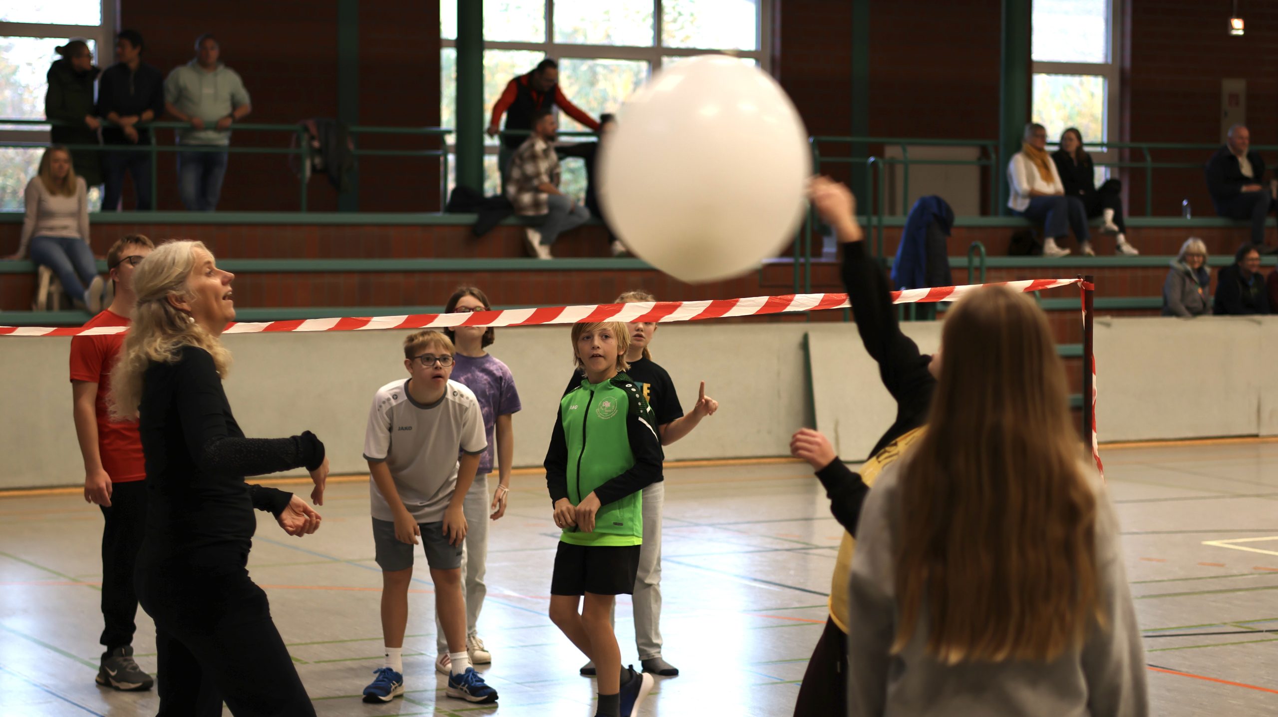 Den Auftakt gestalteten die B-Dancers, die mit ihrer eindrucksvollen Vorführung sofort für eine positive und offene Atmosphäre sorgten. Am Ende ihres Auftritts gelang es ihnen sogar, das gesamte Publikum zum Mittanzen zu bewegen. Im Anschluss öffneten die Mitmachstationen, an denen unter anderem Luftballon-Volleyball, Rollstuhlparcours, Wheel-Soccer, Polybat und Boccia angeboten wurden. Die abwechslungsreichen Bewegungsangebote waren schnell gut besucht und boten für alle Teilnehmenden passende Möglichkeiten, verschiedene inklusive Sportarten auszuprobieren.